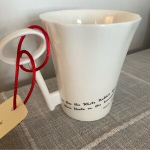 Elegant white fine bone china mug by Whittard Of Chelsea featuring a charming rabbit design and key shaped handle. Ideal for tea or coffee.