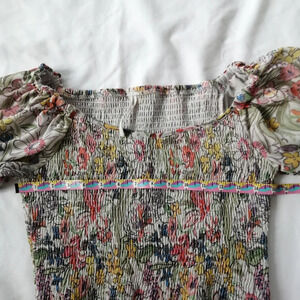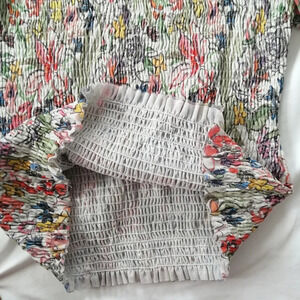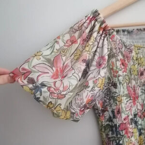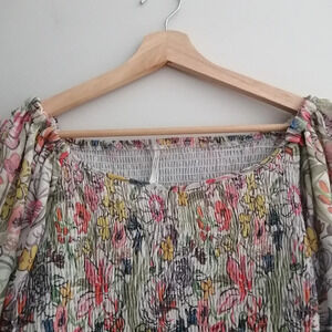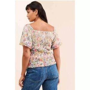 By Anthropologie Aurelia Floral Smocked Top Blouse with Puff Sleeves Large