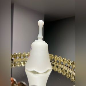Vintage Fenton White Satin Milk Glass Petite Bell Pink & Purple Flowers 1960s
