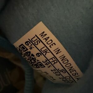 Light blue suede with classic white stripes. Comfortable and stylish design.