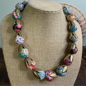 Lenora Dame Tulip Necklace Pastel Floral Millefiori Polymer Beads Glam 20 Inch