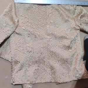 Elegant textured blazer with a shimmering gold finish. Perfect for sophisticated occasions.