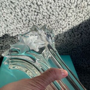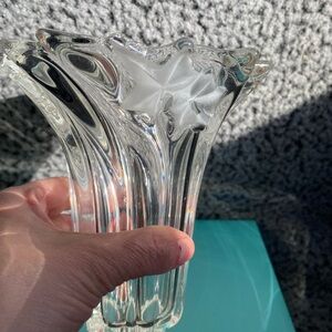 Enhance your home decor with this elegant clear glass vase. Its unique design adds a touch of sophistication to any room.