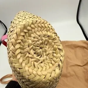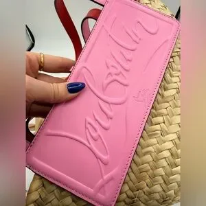 Stylish woven tote with pink accents. Perfect for any occasion. Signature Christian Louboutin design.