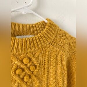 J.Crew DemyLee Mohair Wool Cable Knit Sweater XS Balloon Sleeve Chunky Mustard