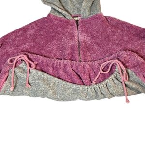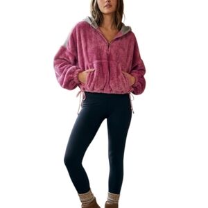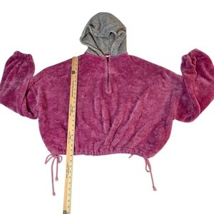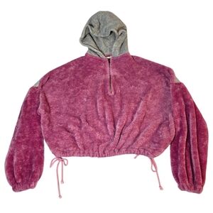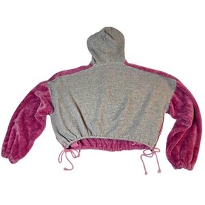 Free People Fuzzy Cropped Oversized Half Zip Soft Hoodie Pink Gray Large