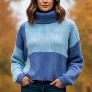 Wild Fable Blue Cropped Colorblock Turtleneck Sweater