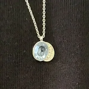 Dainty necklace featuring an ice blue and crystal pendant on a 16” adjustable chain. Perfect for any occasion!