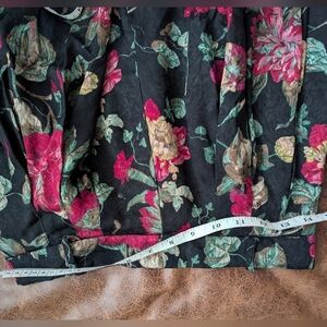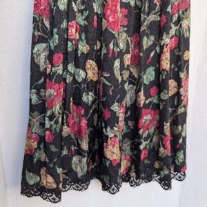 Vintage Berwin & Wolff floral maxi skirt with romantic cottagecore charm. Features delicate pleats and a lace-trimmed hem, blending timeless elegance with vintage flair.