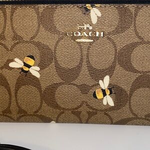 Chic Coach wristlet wallet with playful bee design. Ideal for any ensemble!
