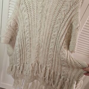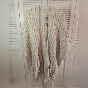 Aerie Shawl Cape One Size NWT Oversized Fringe Boho Knit Vest