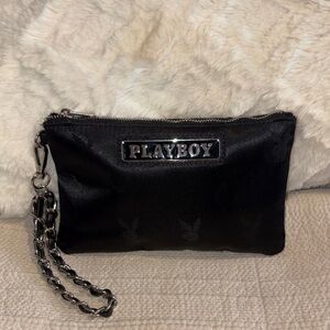 PLAYBOY Black Wristlet with Chain Detail. No callouts.