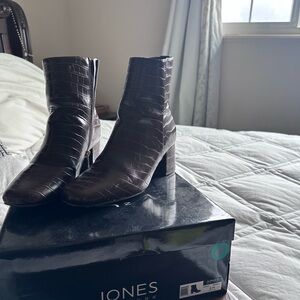 Jones New York Chocolate Croc-Pattern Heeled Boots