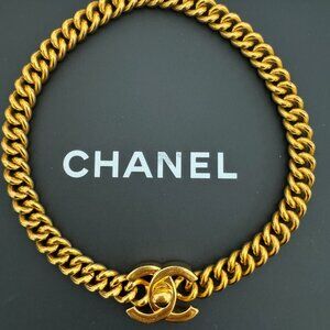 Chanel Turnlock Necklace 24K Gold Plated 1997