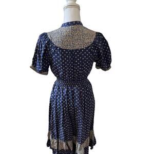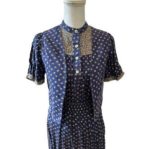 Vintage 70s Cottage Core Prairie Peasant Skirt Set Blue Floral Print