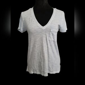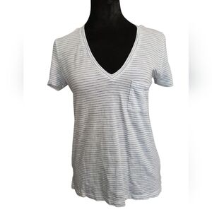 Madewell Blue And White Striped V-Neck Women's Top XXS