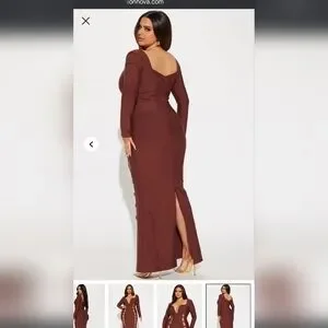 Chic long sleeve dress with bold cutout details. Deep brown hue. Perfect for a night out.