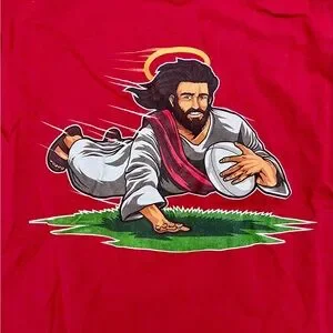 Jesus Rugby Tee Youth Large Adult Small Red Shirt boys girls men’s women’s