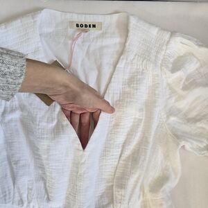 NWT Boden Anna Double cloth Midi dress white cotton gauze ruching sz 6P