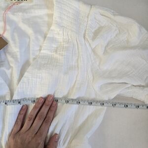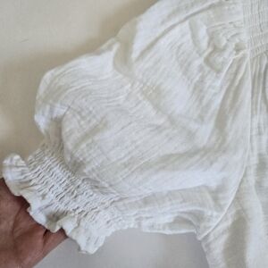 Beachy, coastal, cottagecore, bohemian, festival, country coastal, coastal cowgirl, cotton gauze dress, puff sleeve, V Neck, ruching, tea party, date, girls brunch