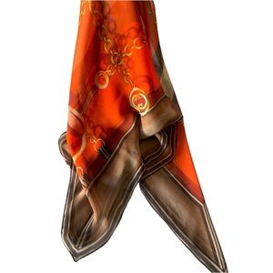 Scarf , very trendy orange and brown color,chain print design. Perfect for adding a pop of color to any outfit.40”x40”