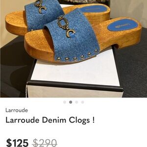 LARROUDE Blue Denim Horsebit Women's Slide Sandals