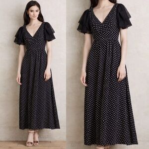 Anthropologie Eva Franco NWT Black & White Clipdot Maxi Dress Flutter Sleeve 4