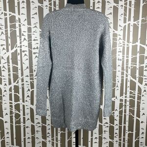 Silver Metallic Painted Wool Blend Longline Open Front Cardigan Sweater S