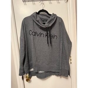 Calvin Klein Cropped Pullover Cowl Neck Sweatshirt XXL Gray Logo