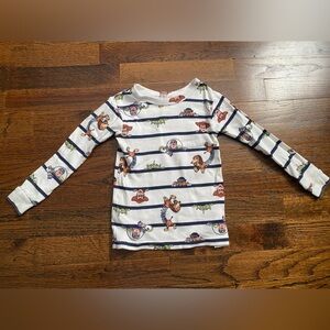 Baby GAP- Toy Story gang GAP Pixar toddler 4yrs Pajama Set gender neutral boy girl PJs. Long sleeve organic cotton pants two piece set. 100% cotton. Features various members of Andy’s beloved toys: Woody the cowboy, Buzz Lightyear space ranger, slinky dog, Mr. Potato head, Pizza Planet aliens.