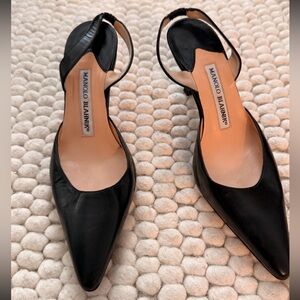 Manolo Blahnik Black Leather Slingback Heels Size 36