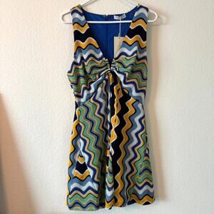 Ramy Brook Mini Dress Blue Green Mod Size 10 Large NWT Missoni-Inspired Resort