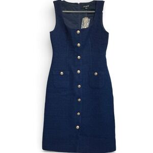 NWT J. Crew Sophia Sleeveless Tweed Wool Blend Navy Blue Midi Dress Size 8