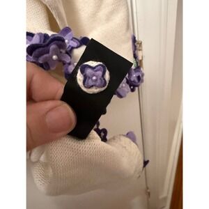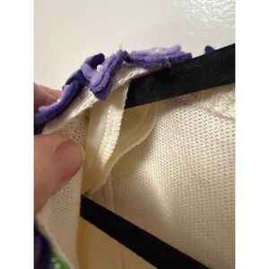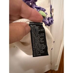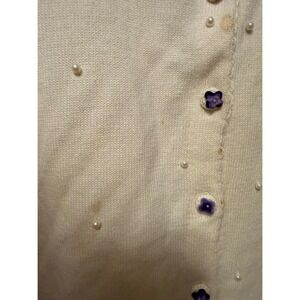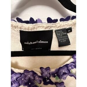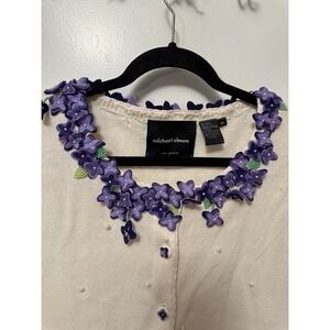 Vintage Michael Simon White Embellished Cardigan Spunsilk Blend Floral PLUS 3X with purple appliques and pearl details.