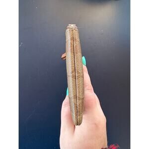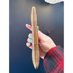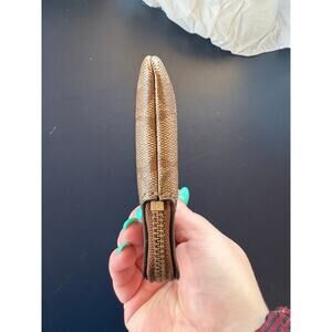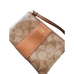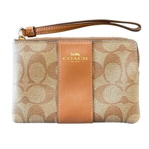 Coach Logo Signature Canvas Corner Zip Leather Stripe Khaki Wristlet Old Money