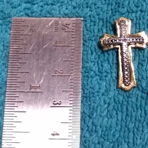 Goldtone and Silvertone Cz Cross Pendant Christian Religious Vintage