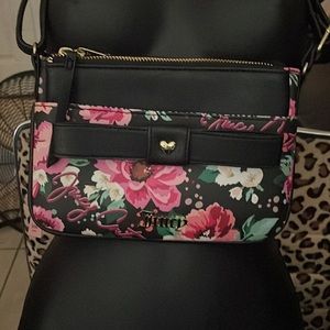Floral print detail with adjustable strap can be worn as a crossbody bag has gold hardware had one zippered compartment and one slot inside bag also comes with removable zippered pouch NWT