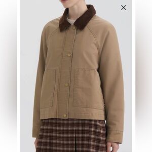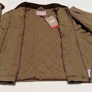 Hunter Insulated Tan Barn Crop Jacket with Dark Brown Corduroy Collar M NWT