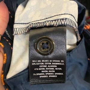 These are a pair of The Essential Slim by Anthropologie pants. Size 0P. They are a really fun print. They are lightly worn. Waist lying flat is about 14.5”, inseam is about 23.5”.