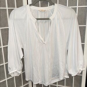 🌸White Peasant Top with Tie-Front Neckline