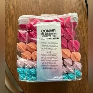 Create stunning curls with Conair Soft Curls Foam Rollers. This is a pack of 48 heatless foam curlers. Can be used on wet, damp, or dry hair. You can even sleep in them. These are designed for effortless styling and comfort. Perfect for all hair types, they ensure beautiful, bouncy curls. NWT I purchased to use for college production and never even opened the package.