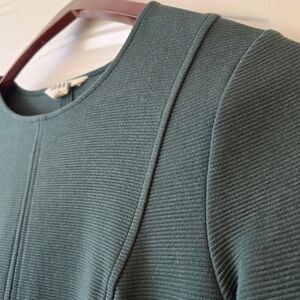 boden dress, ottoman knit dress, green shift dress, work dress, minimalist dress, textured knit dress, long sleeve dress, classic wardrobe staple, fall dress, winter dress, office wear, british fashion, structured dress, womens size 10 dress