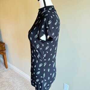 Reitmans viscose top shirt short sleeved with feather print