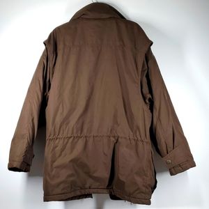 * Brown Polyester Outter, parka jacket with snap closure. 7 snaps