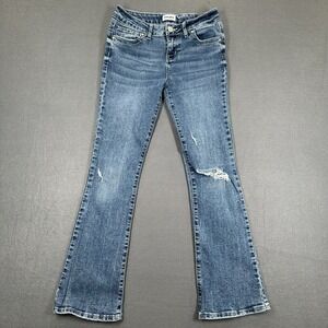 RSQ Jeans Girls 12 Blue Denim Flared Leg Stretch Distressed Y2K Grunge