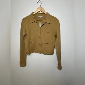 J.Crew, patch pocket sweater, lady jacket, cotton, honey, brown preppy XS NWT