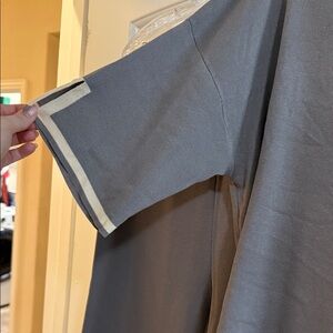 Soft gray pajama set with cream accents. Includes top and pants. Perfect for a cozy night in.