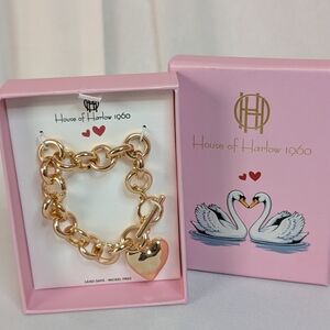 House of Harlow 1960 Gold chunky Chain Bracelet with Heart Charm