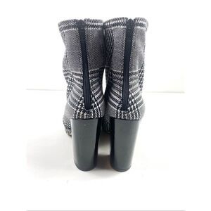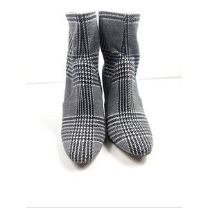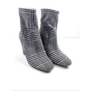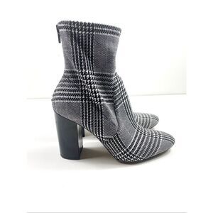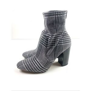 ALDO Lovelee Houndstooth Plaid 3.5” Block Heel Back Zip Ankle Boots Stretch Size