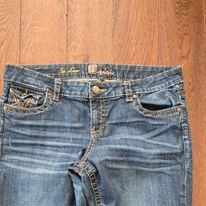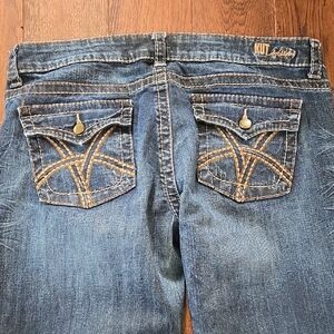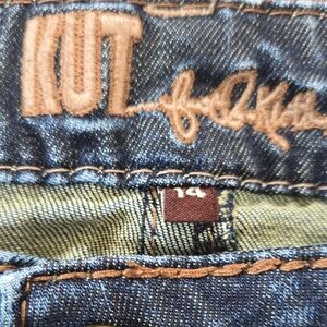 Kut from the Kloth So Low Dark Blue Boot Cut Jeans 14 Whiskered